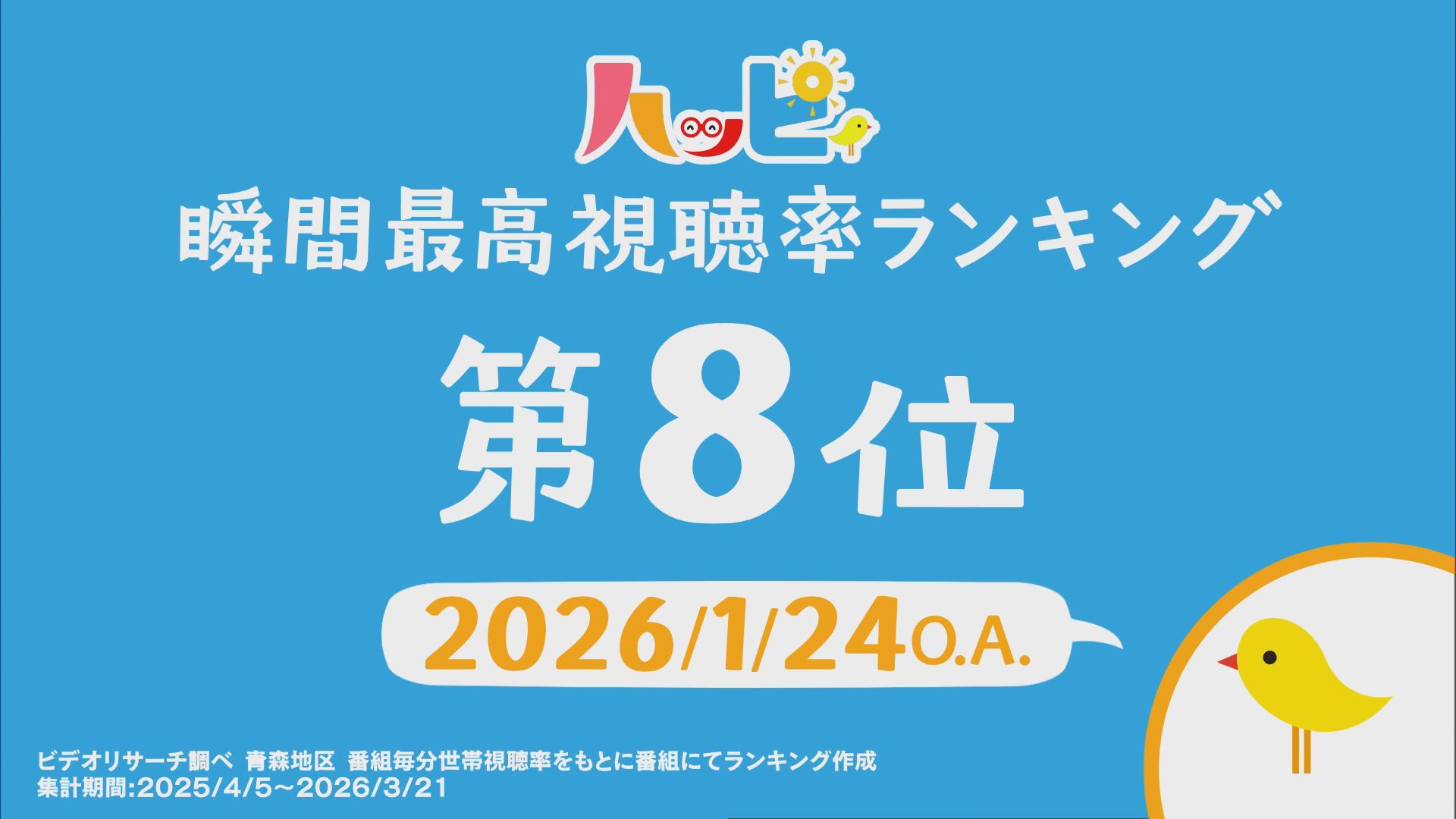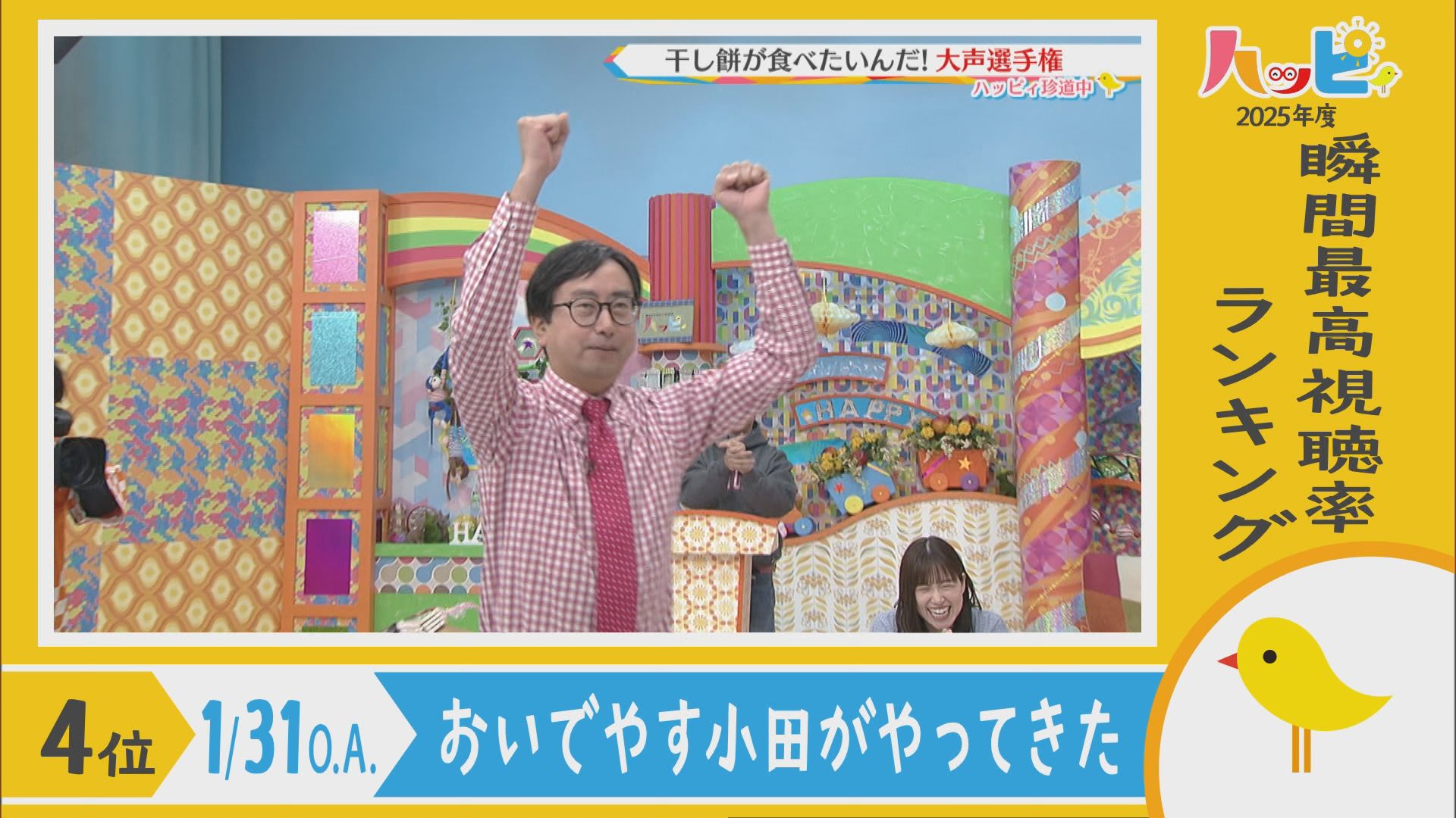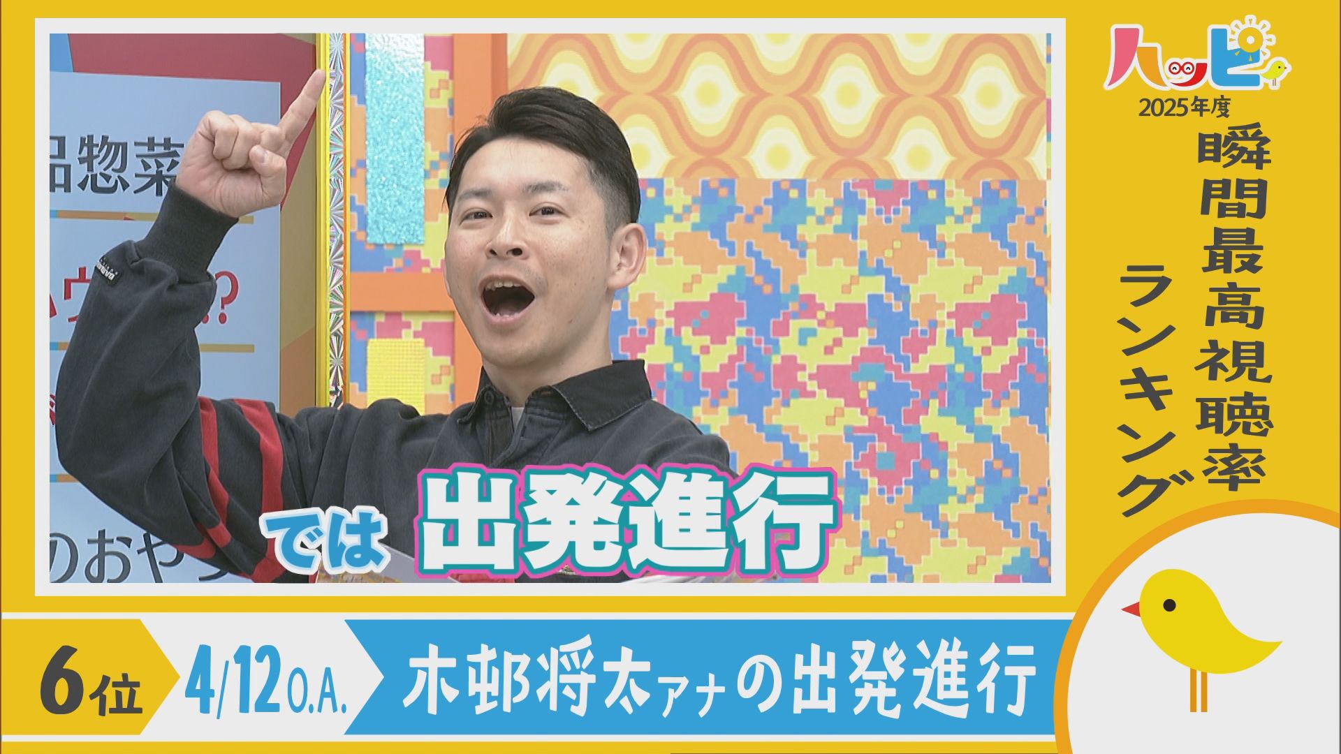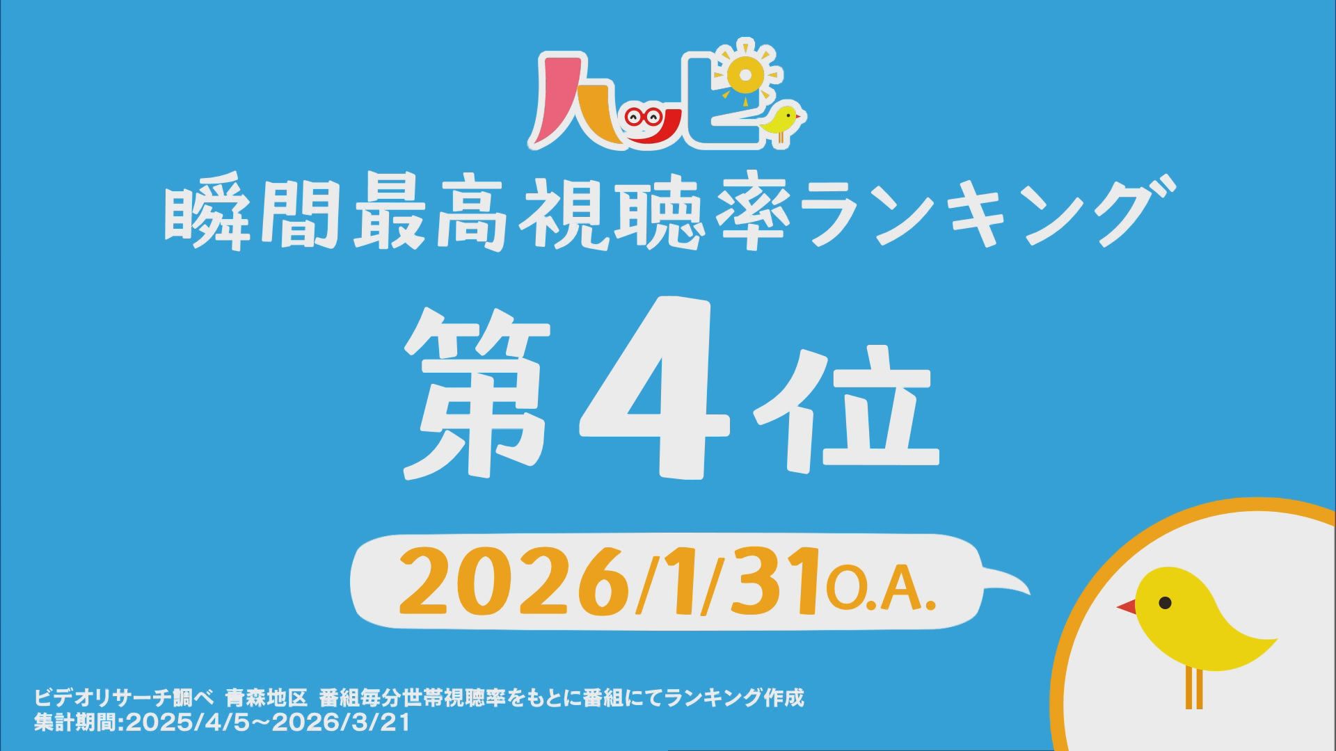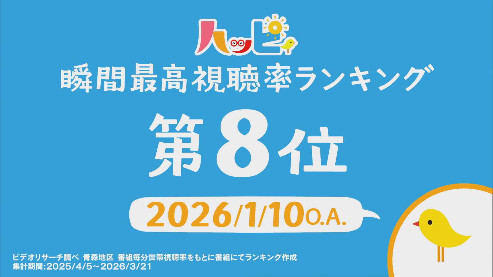 2025年4月5日~2026年3月21日に放送されたハッピィで、 瞬間最高視聴率ランキングを出してみました。 皆さんが見ていたあのシーンは放送されてるかな?
