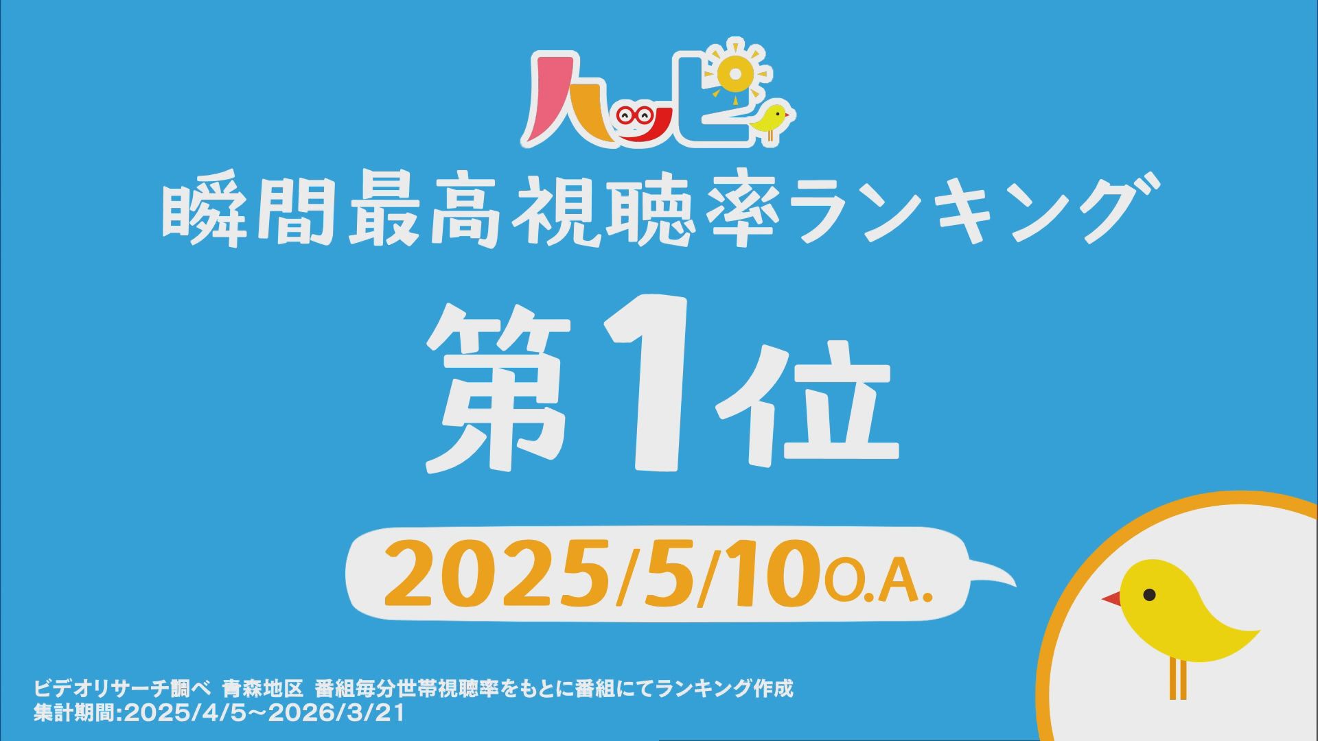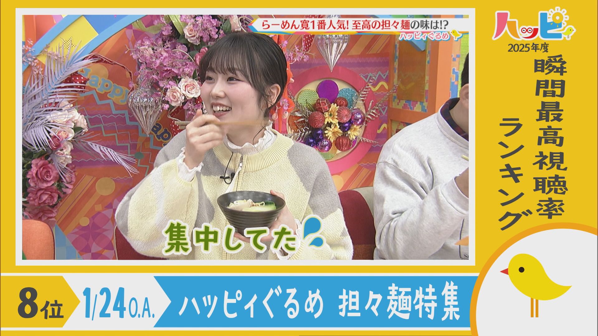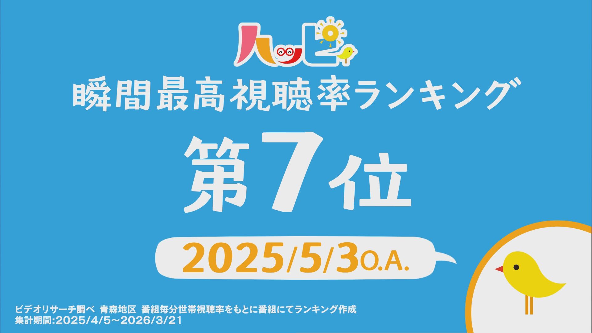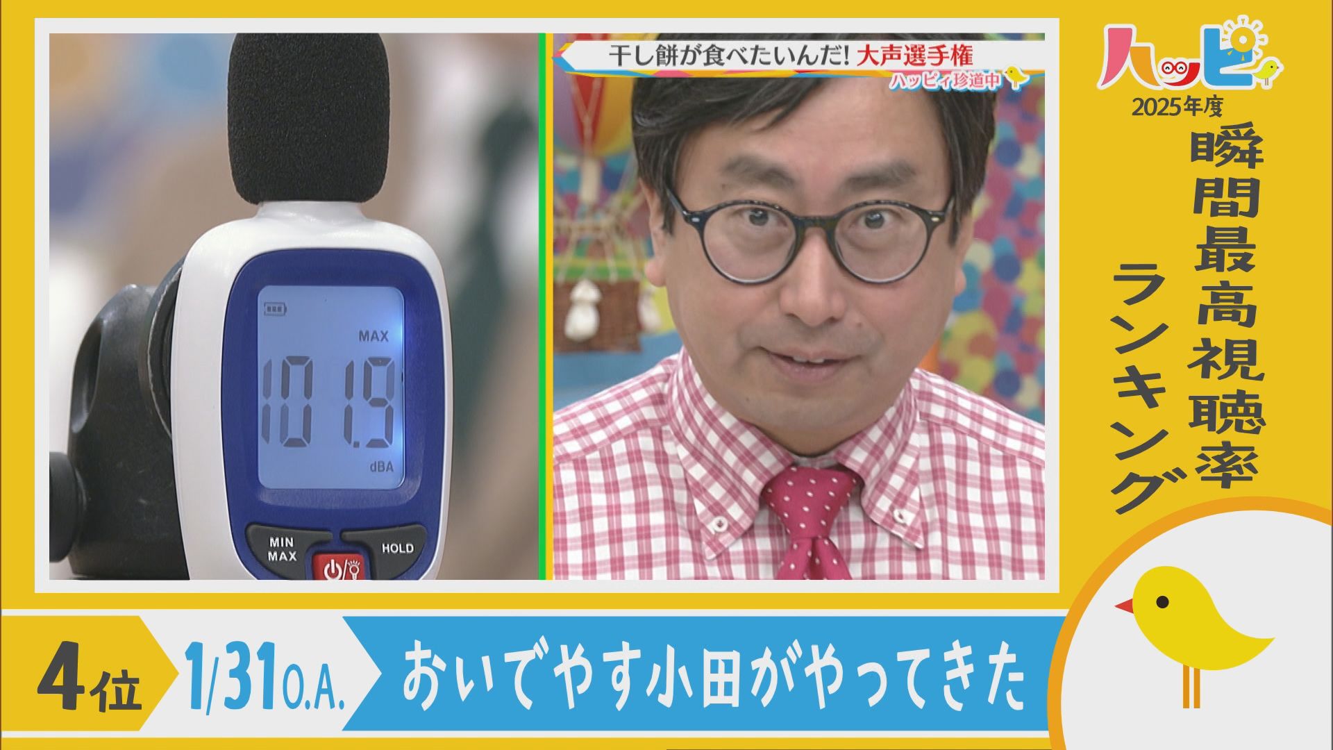 2025年4月5日~2026年3月21日に放送されたハッピィで、 瞬間最高視聴率ランキングを出してみました。 皆さんが見ていたあのシーンは放送されてるかな?
