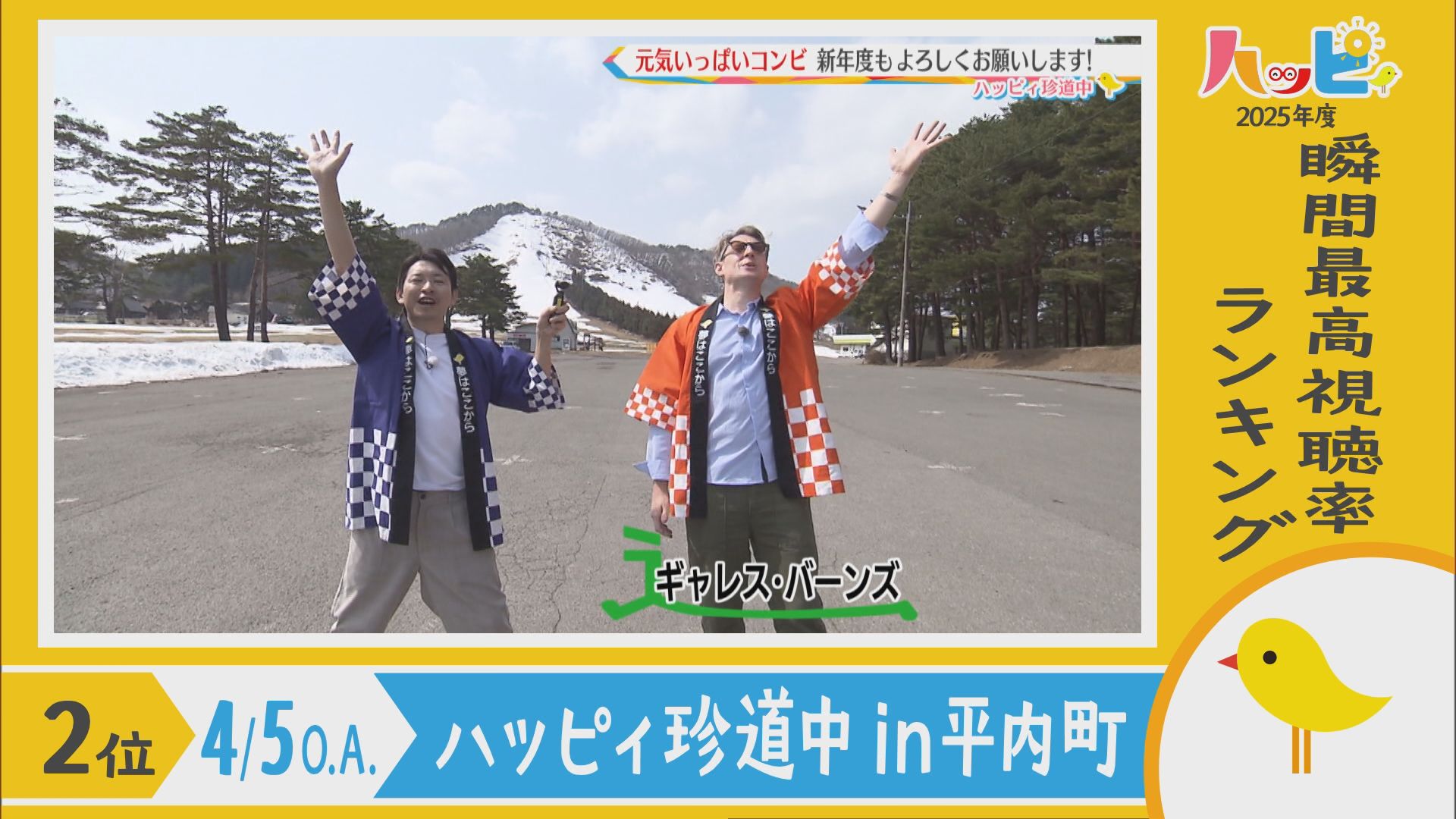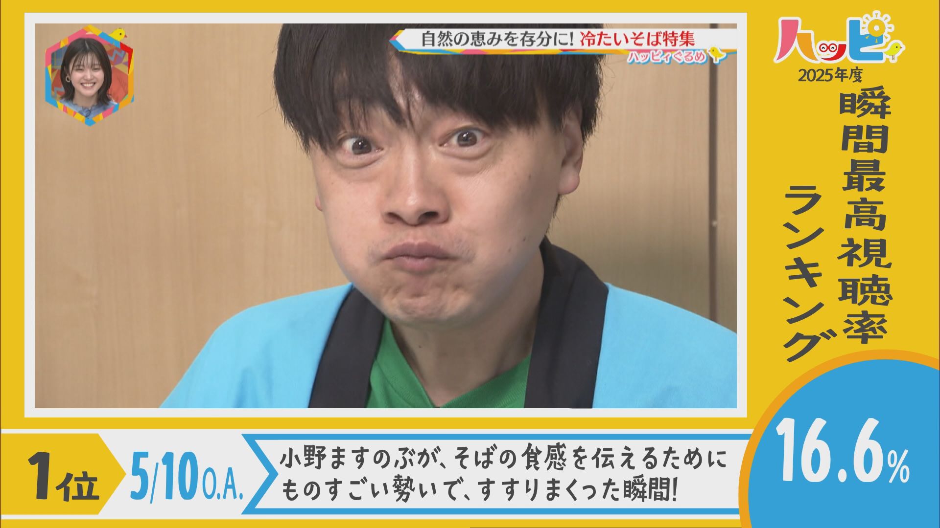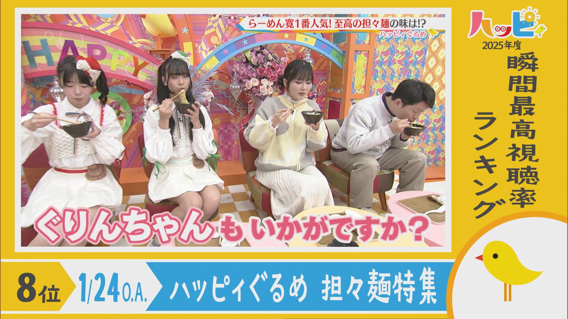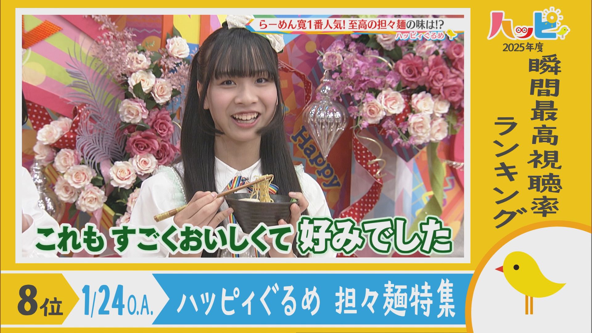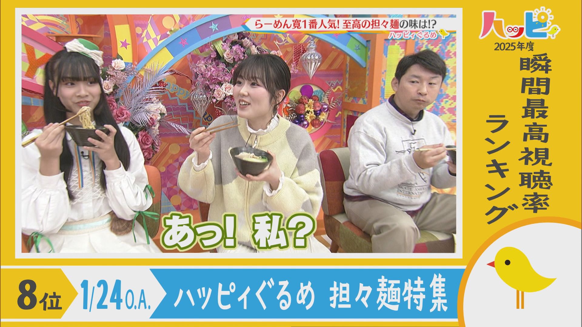 2025年4月5日~2026年3月21日に放送されたハッピィで、 瞬間最高視聴率ランキングを出してみました。 皆さんが見ていたあのシーンは放送されてるかな?