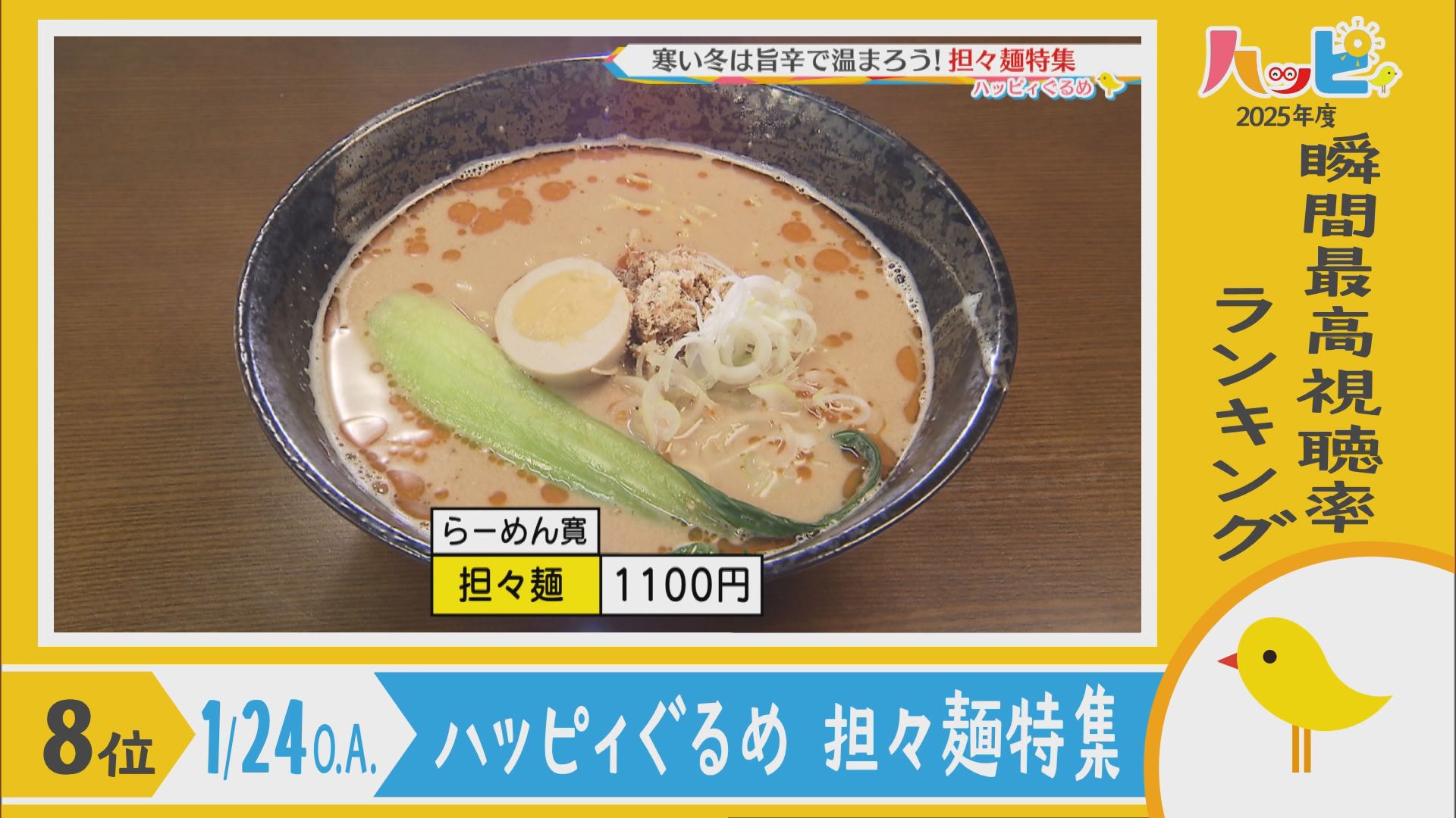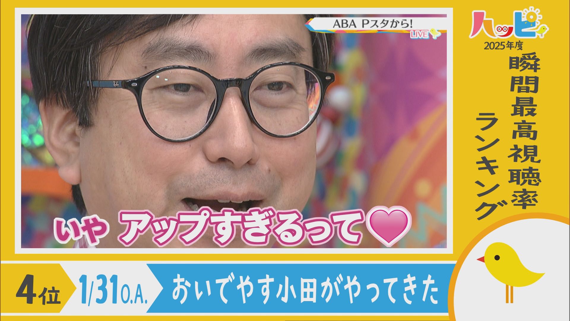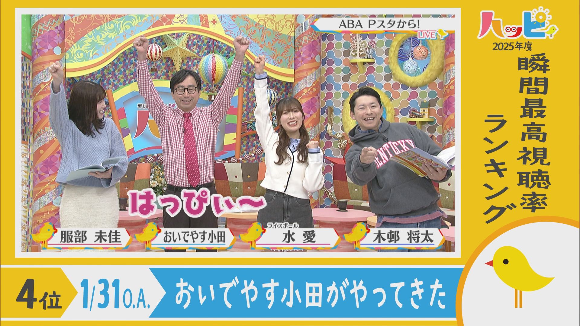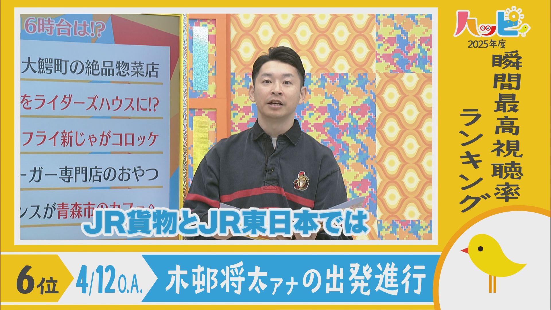 2025年4月5日~2026年3月21日に放送されたハッピィで、 瞬間最高視聴率ランキングを出してみました。 皆さんが見ていたあのシーンは放送されてるかな?