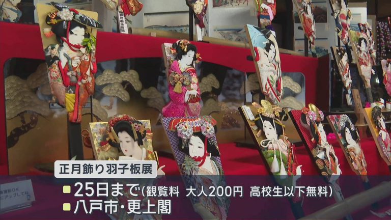 八戸市の更上閣 新春彩る「正月飾り羽子板展」