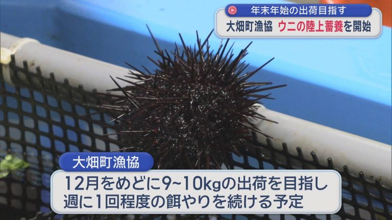 大畑町漁協は、12月をめどに9~10キロのウニの出荷を目指し、週に1回程度の餌やりを続ける予定です。