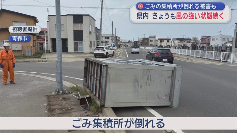 青森県内 風強い状態続く ごみ集積所倒れる被害も