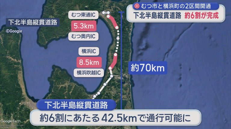 むつ市と横浜町の2区間開通 下北半島縦貫道路 約6割が完成