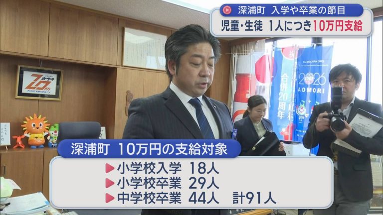 深浦町 入学や卒業の節目 児童・生徒 1人につき10万円支給