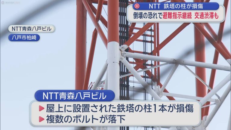 NTT 鉄塔の柱が損傷 倒壊の恐れで避難指示継続 交通渋滞も/八戸市