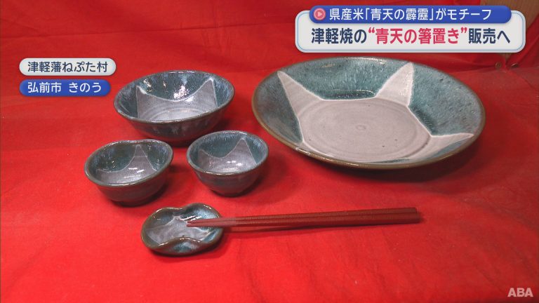 “青天の箸置き”登場 青森県産米モチーフの津軽焼